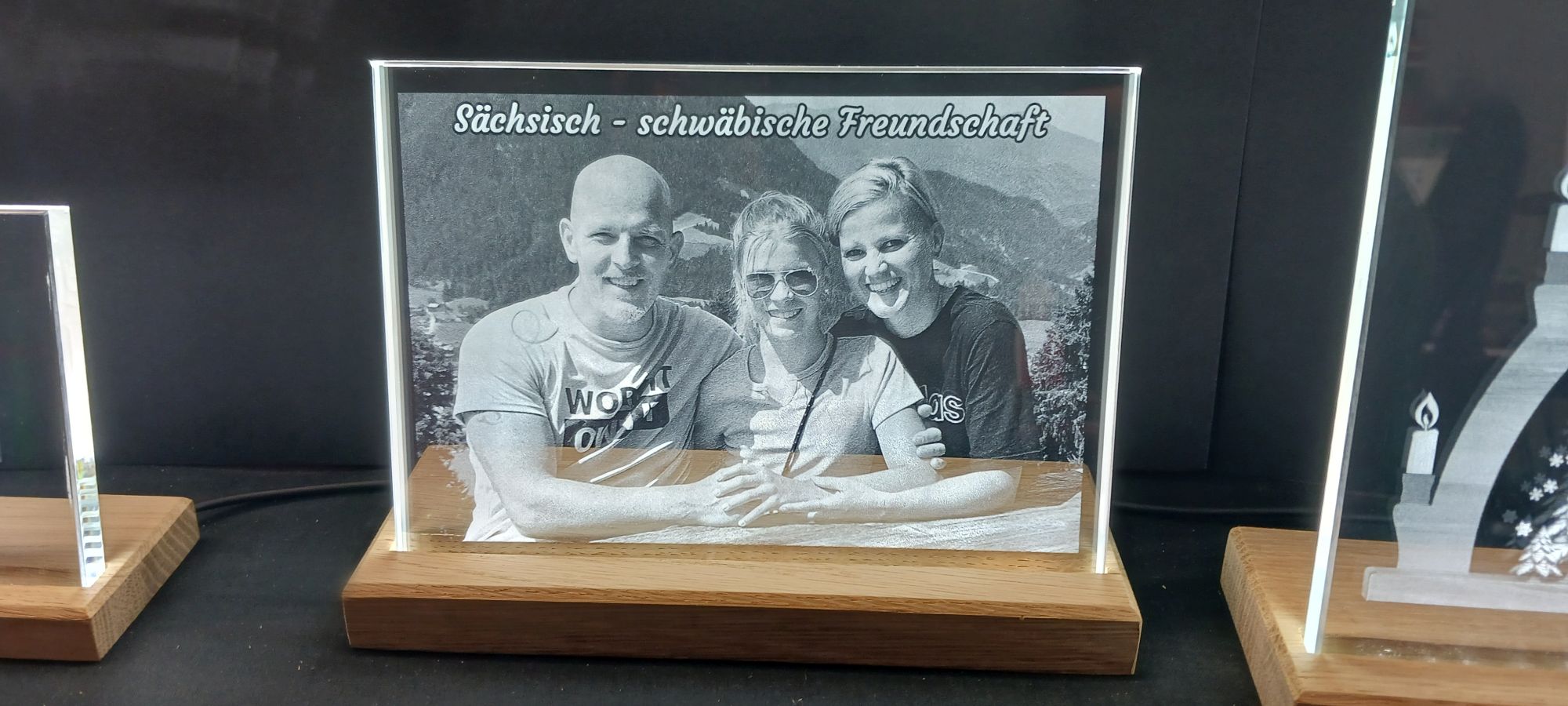 Verewigen Sie das schönste Bild in Glas! Stellen Sie es im eigenen Wohnzimmer auf oder verschenken Sie es an Ihre Geschäftspartner oder Lieben. Setzen Sie Ihr bestes Foto mit LED Licht in Szene!