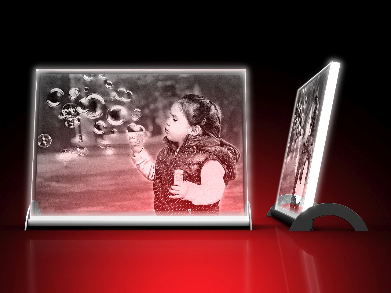 Das beleuchtete Glasfoto zieht alle Aufmerksamkeit auf sich und spendet ganz nebenbei indirektes Licht. Für romantische Stimmung ist mit dem LED beleuchteten Glasfoto gesorgt.