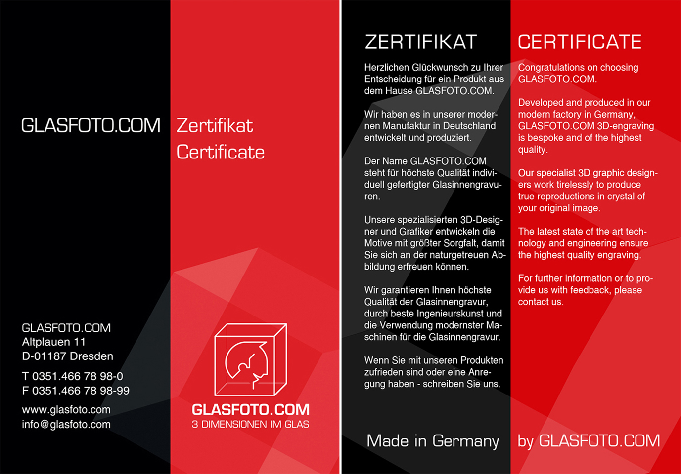 Unvergänglich werden sie in brillanter Qualität in wertvollem Kristallglas für die Ewigkeit festgehalten. Machen Sie sich selbst, Ihrer Familie oder Freunden mit einem Glasfoto ein exklusives und individuelles Fotogeschenk.
